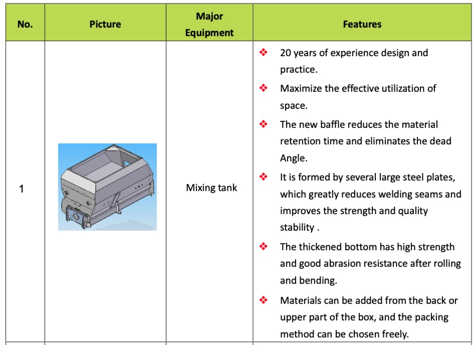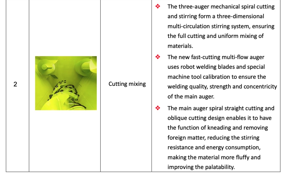 | 2 Three-auger circulation mixing system | ● | ● | ● | ● | ● |