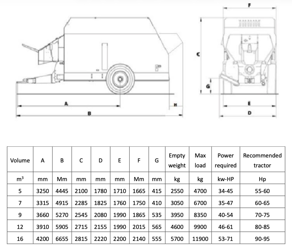 | Standard | 5m³ | 7m³ | 9m³ | 12m³ | 16m³ |
