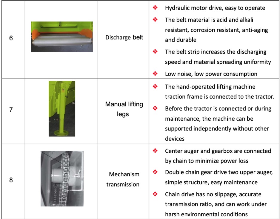 | 4 discharge belt | ● | ● | ● | ● | ● |