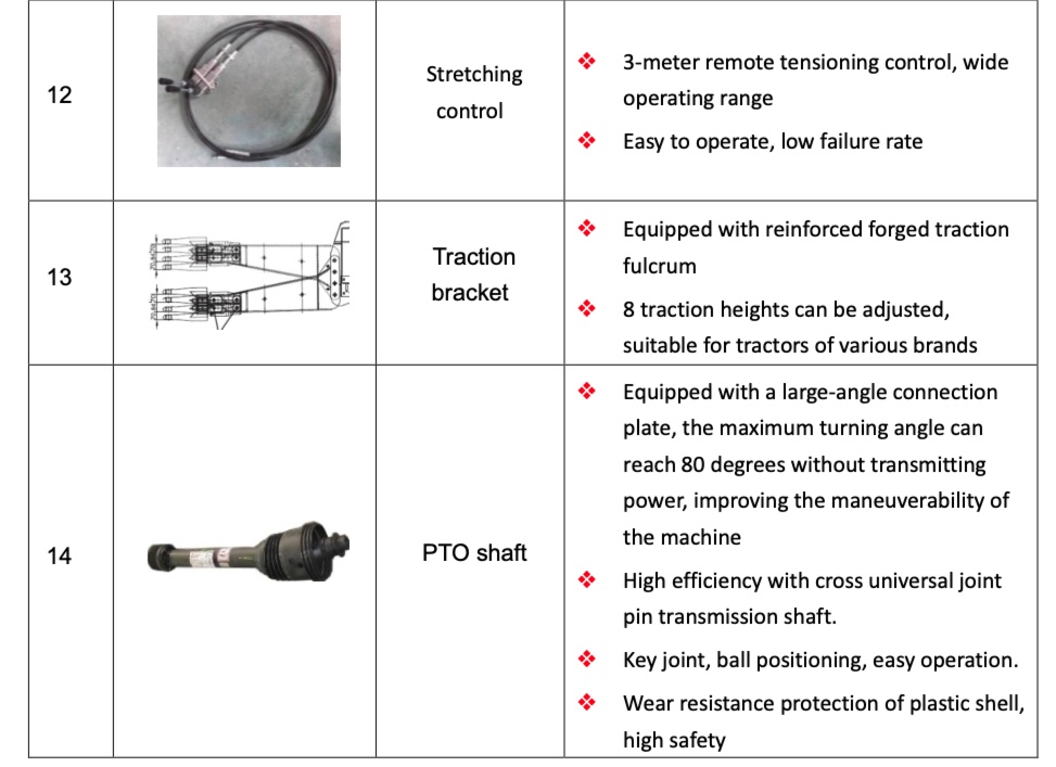 | 3 Right front unloading system | ● | ● | ● | ● | ● |